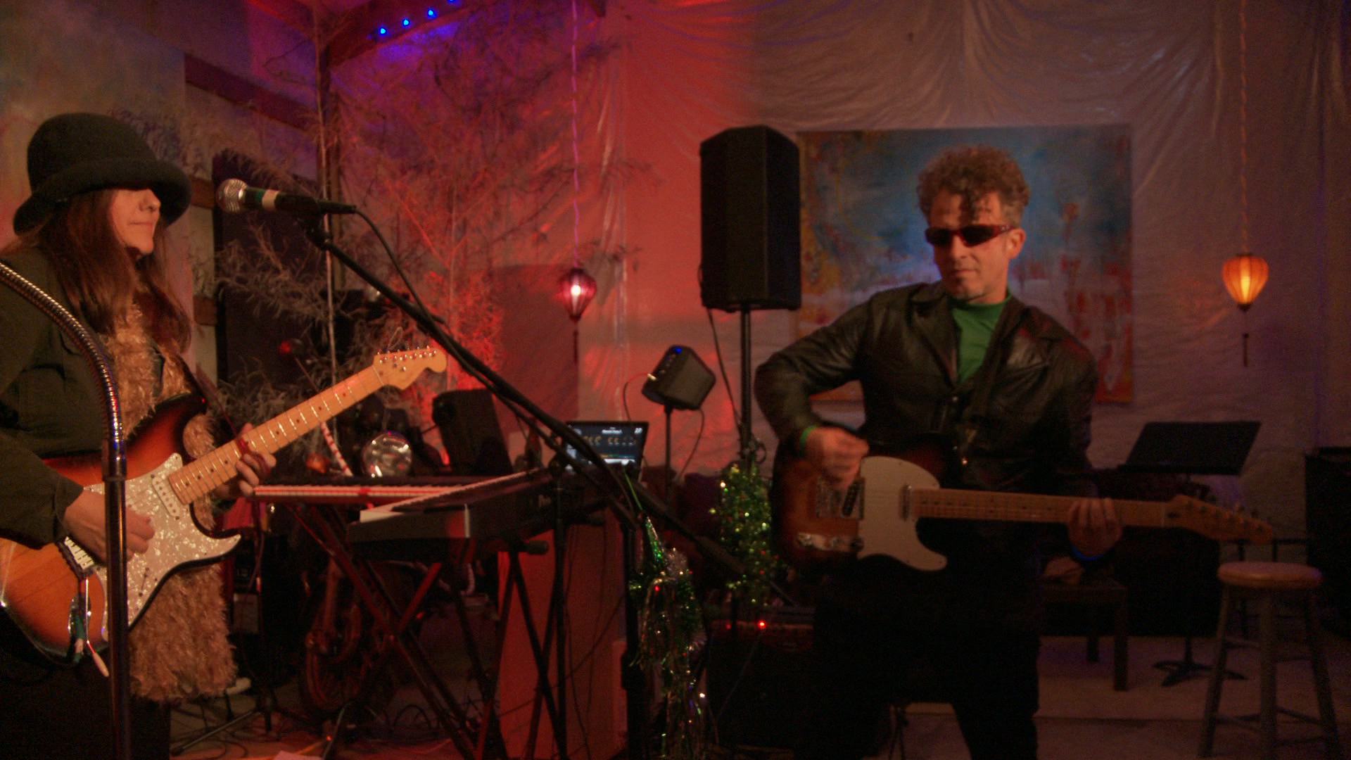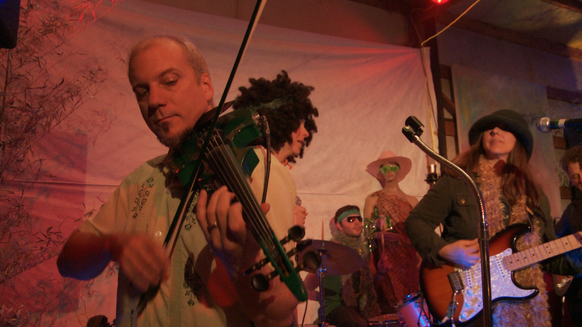 Phil Heaven aka “Lucky McLuva” on 5-string electric viola as Cheri Nunamaker looks on
