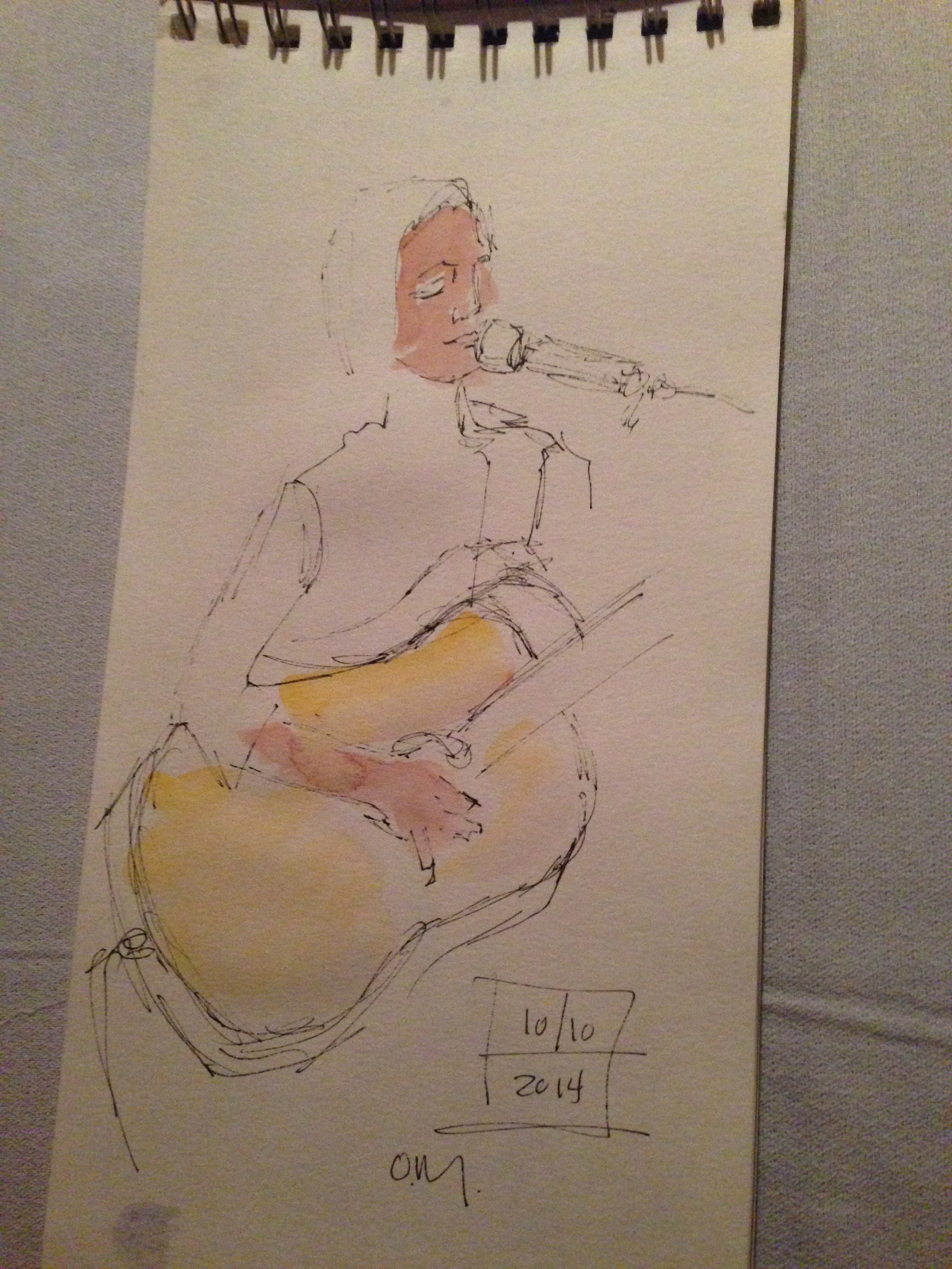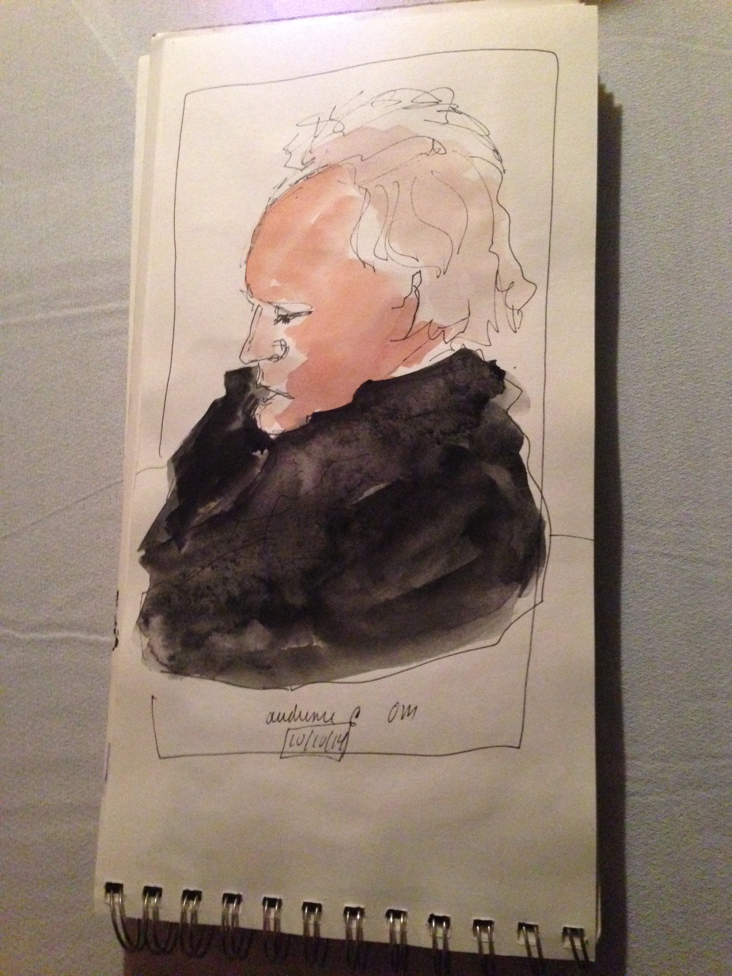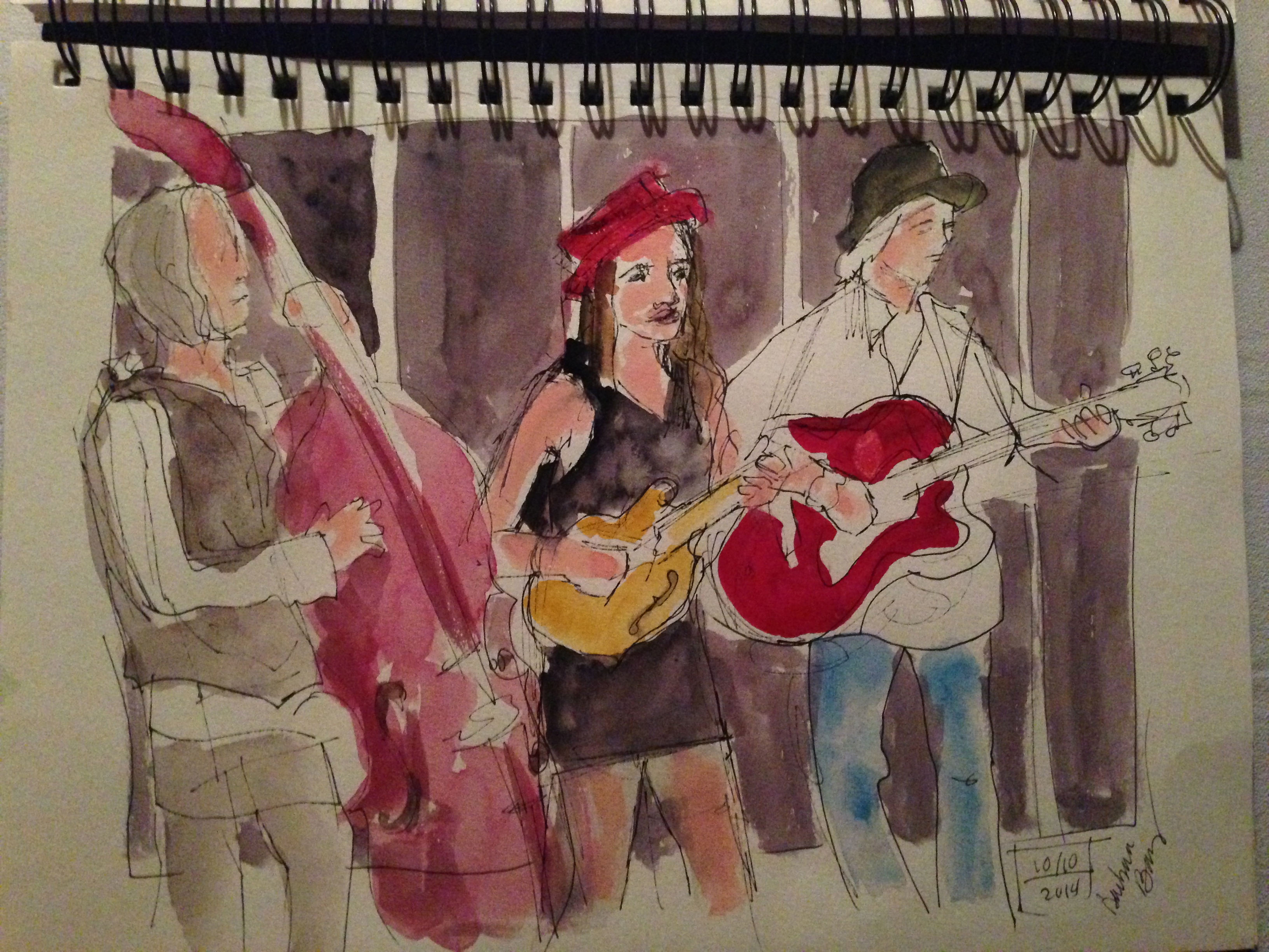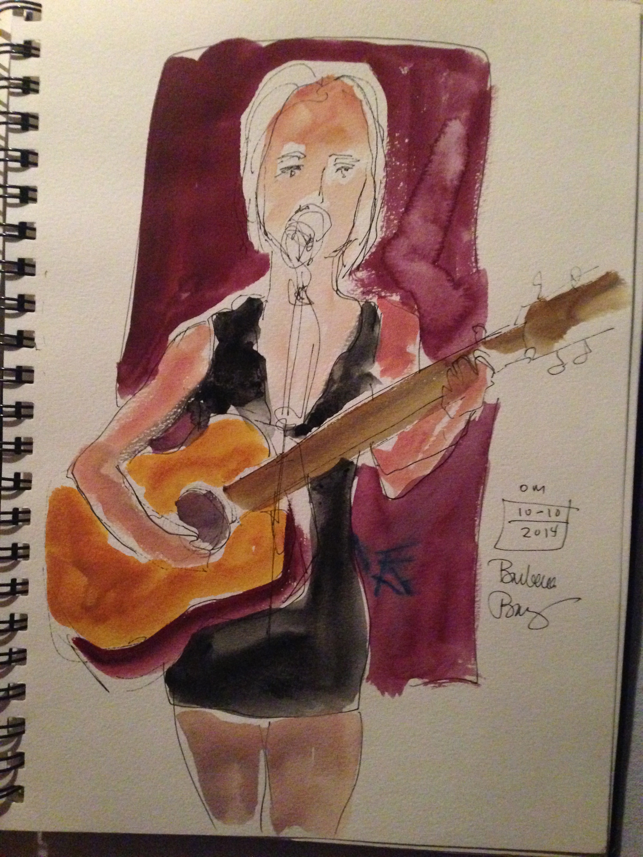 Watercolor sketch of audience member by artist Barbara Barry @ Bob Paltrow, Bekah Zachritz, Kelly Holmes and Warren Meier @ Ott & Murphy’s Winery Tasting Room, Langley WA, 10.10.2014